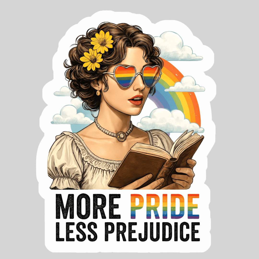 More Pride Less Prejudice – 3″ Waterproof Bookish Sticker with Holo Overlay – Reading, Books, Reader Gift, Book Lover